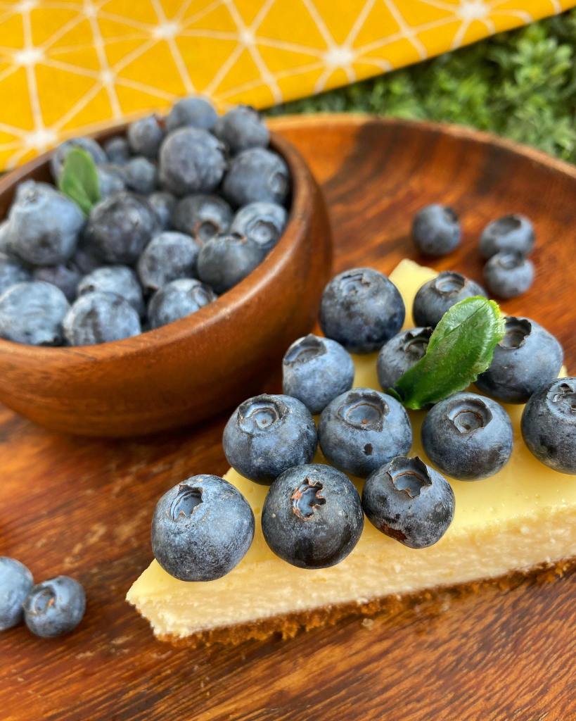 It comes as no surprise that I have developed many blueberry cheesecake recipes over the years. I use frozen or canned blueberries most of the time, but whenever I get my hands on fresh blueberries, I use them as is. No fuss, just top the cheesecake with